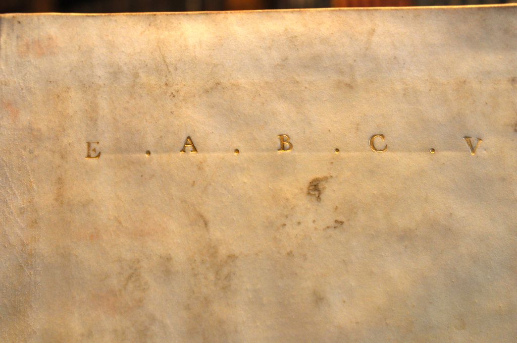 Az „E. A. B. C. V.” rövidítés az „Ex Augustissima Bibliotheca Caesarea Vindobonensi“, azaz a császári könyvtár elnevezésére vonatkozik, a „P. L. B.“ pedig „Petrus Lambecius Bibliothecarius“, azaz Peter Lambeckre, Lipót császár nagyrabecsült könyvtárprefektusára és udvari történetírójára utaló rövidítés.